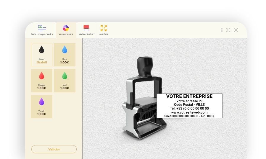Création & vente en ligne de tampon personnalisable, avec plus de 150 références